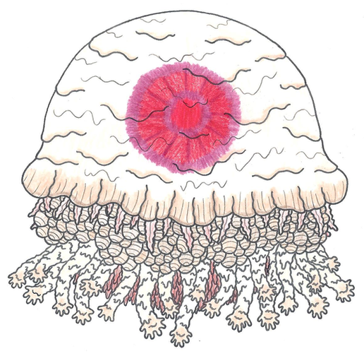 Once an adult, a Charybdis never stops growing as long as it is alive. Specimens that live for decades can grow to massive sizes, which leads to the legends and seafaring stories that everyone hears. When a Charybdis reaches a large enough size, their feeding method can create a whirlpool on the surface of the water. This swirling vortex of water pulls in anything caught in its currents down into the shredding maw of the Charybdis. This has led to many encounters where ships will cross above an old Charybdis and set off its sensors. The trigger of its feeding mechanism will result in a whirlpool that will pull the ship and its occupants down into the depths below. This is what creates the stories of a wrathful ocean, or sea demons looking to consume trespassing ships. Charybdises are widely feared by the seafaring community, and they are right to do so. An unlucky ship can quickly be consumed if the crew is not capable enough to escape, and some tales speak of an ancient Charybdis capable of swallowing entire fleets. What makes matters worse for the sailors is the symbiotic relationship that a Charybdis can have with a Scylla. The large jellyfish will live just outside of their suction zones, and use their feeding tendrils to nab escaping prey. So sailors or boats that have escaped the whirlpool are still not out of danger yet! A Scylla will also extend feeding tendrils towards the Charybdis and feed off any parasites that may attach to its exterior. In turn, the Scylla gets a meal, and the Charybdis is parasite free.