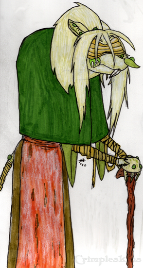Also we are not using this picture of you. What are even doing in this? You're supposed to look professional in these, not philosophical. This looks so staged, and you totally don't act like this in real life! I mean, the skull, the books, the pose and that pondering look. Does not fit you at all, I am not presenting you like this to the audience. Especially since you didn't even clean up for it! Your headcap! Your foliage! Why didn't you at least pull out those sticks! You let someone draw you looking like that!? You still have moss growing on you! How many times have I told you to scrape that off before something official!? And if you are going for a contemplative look, why are you still wearing your vest!? Put something decent on! You're hopeless! Next time you get a picture done of you, I am coming along so that you don't look like some overgrown thicket!