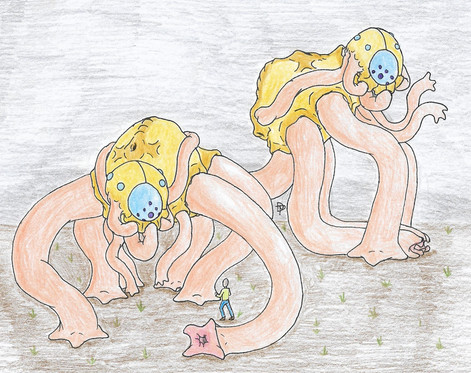 From their appearance alone, I bet you can guess what two dryad types came together to make Flayed Dryads. With pale flesh and a ludicrous amount of crimson fluid dripping off them, it is obvious that one mother of this hybrid species is a Bloody Dryad. The other mother's influence can be seen in their tall stature and exposed limbs, which are key features of Ivy Dryads. When an Ivy and a Bloody dryad come together, they have a chance of birthing a Flayed Dryad. The name of this hybrid species is something I am not a fan of, but I cannot deny that it kind of fits with their appearance. Due to the crimson fluid they produce and the skinless parts of their body, they do give the look of a creature that has been skinned alive. However, they are in no way injured or mutilated, nor is their body dripping blood. I have said it before in my Bloody Dryad entry, but the red fluid that comes from their body is not blood, nor is it the sap we dryads have (Both Flayed and Bloody dryads have sap, I am just saying it stays inside their bodies). It is instead a liquid they use to protect their pale flesh from the sun, as they can easily receive burns from overexposure to its rays. It is almost the same stuff that Bloody Dryads use for sunblock and marking, but Flayed Dryads have something a bit extra to their secretions. Thanks to their Ivy Dryad mother, their body also produces an oil, but it too is different. Rather than causing the burning, itchy effect that Ivy oil is known for, it instead causes numbing to parts that are exposed to it. Plants and dryads are immune to this effect (like how they are immune to Ivy oil) but flesh based beings are affected. This numbing sensation only lasts a few minutes, but it is really easy to get exposed to this oil because it gets absolutely everywhere! You see, with their body creating sunscreen "blood"and numbing oil at the same time, the two mix together into one and proceed to drench the Flayed Dryad's body. It doesn't help that their exposed musculature also secretes this combo liquid. So if you ever meet a Flayed Dryad, be sure to bring water proof clothes, or at least an extra set of garments.Besides the copious amounts of fluid they produce, the other things people notice about Flayed Dryads is their skinless portions of their body and their height. Due to the Ivy influence in their birth, Flayed Dryads have limbs similar to that mother. This lack of covering is not painful to them, as their musculature has developed a tougher coating to make up for this exposure. However, this unseen layer is not as strong as an Ivy's, as it has pores that allow it to secrete fluids. This means that these parts of their body are vulnerable to desiccation, as long term exposure to sun and heat can dry them out and cause pain. This requires the Flayed Dryad to constantly coat their body in the sunscreen fluid, or seek out moisture to keep themselves damp. To avoid this pain, Flayed Dryads tend to stick to damper environments or places where the sun is not as strong. If you ever see one walking about town, you can observe them sticking to the shade and moving through sunny areas at a brisk pace. This exposed flesh also has the tendency to pick up parasites and other nasty things, making it important for a Flayed Dryad to groom themselves and keep up their hygiene. It is kind of bizarre that the dryads that constantly sweat out bright red fluid are obsessed with self-care and good hygiene. The amount of time they have to spend moisturizing and grooming themselves would almost impress a Floral Dryad! Unfortunately the staining liquid they pump out already makes them banned from most Floral settlements.