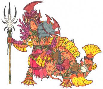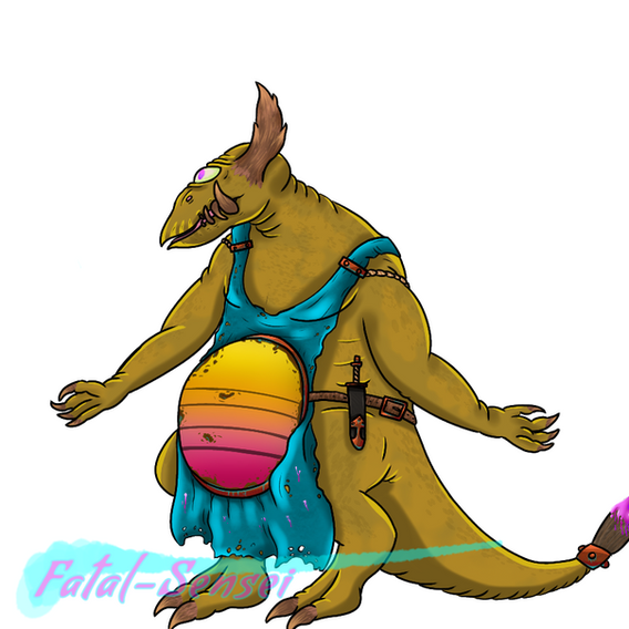 It took me a while to catch up to your creations, but now that i've arrived at these guys i must say i think they are pretty fun from the sounds of it! The fact that they pretty much hold fashion shows and their entire culture is based around being as flashy as possible with all kinds of costumes makes them a pretty darn fun species! Speaking about flashy, your work on the colors here, especially on the skin, looks really darn good! great job on it!