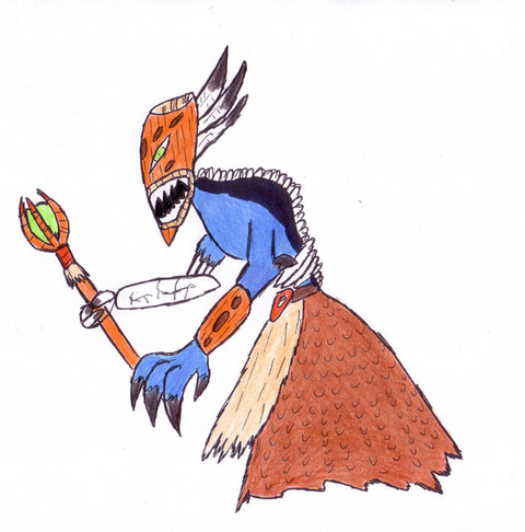 Though some may see this cultural practice of theirs silly and juvenile, it is something that is a huge part of their tribes. Not only is one's attire and colors important for being noticed, but it is also crucial for ceremonies and catching the attention of a mate. In fact, the time of year where they find suitors is the absolute most anticipated days of their lives. Everything before and after these few days are building up to such a grand event. To lay it down in simple terms first, the males of the tribes are looking to woo the females with their colorful getup and complex costumes. If a female likes what she sees, she will approach the male and the two will go off together and begin their relationship. In time, this will lead to offspring and so on so forth. The thing to keep in mind, though, is that it is not as simple as I just wrote it. One does not simply win the females over with the appearance they carry with them day to day. To truly win their hearts, one must make a super special costume and display. To do this, the males of the tribe will spend their entire year leading up to this moment gathering materials and working on their courting display. This will always be done in secret, and it is taboo for a male to let anyone see their costume before that special day (especially if it is a female that sees it). What they want is to build up anticipation and then surprise everyone with their special appearance. If someone were to see it before the ceremony, then they wouldn't be getting the strongest response. These courting garbs they make and wear will wildly vary between individuals (because you don't want to show up to the dance wearing the same clothes as another person! How embarrassing!), as they are constructed with special preferences and ideas in mind. Some may go after a specific color scheme, while others may look to have a theme. Certain males who have their eye on a specific female may try to learn what her favorite things are so that they may incorporate them into their costume. Since these costumes are incredibly complicated and intricate, they require a great deal of materials and resources. A good chunk can be gained by trade and personal collecting, but a lot will come from their hunts for food.