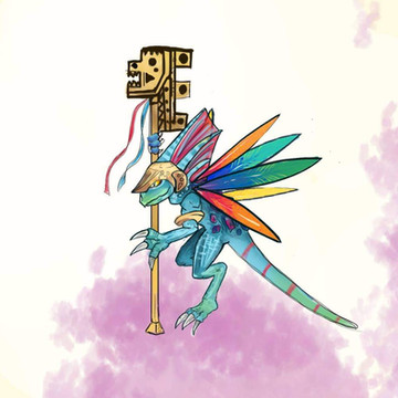 This courting ceremony of theirs is not the only event they hold during the year, as the Furceros are quite the partying group! It seems like almost every month has a special ceremony or ritual they perform, which is meant to appease the gods and strengthen the bond of the village. Though the outside world may like to pretend they're insidious, explorer-eating beasts, they are actually quite the friendly group! In fact, they have even been capable of befriending Floral Dryads! Really! It is shocking to believe and amazing to see! It turns out that Floral Dryads who live in or near these tropical areas are actually quite close to the Furceros. It seems their love for colors, ceremony and flare have given them a thing in common, and the two species are great friends. I would never have suspected! To think those snooty plants could be friends with a tribe of lizards; or friends with anything! Imagine my shock when I finally found the Furceros village I was searching for! Here I was, pushing through dense jungle, hoping to find a hidden tribe that has (supposedly) remained isolated from the outside world for centuries, only to have my first sight be a Floral Dryad helping fix up a Furceros' flower wreath! And to think I was worried about finding a translator! Anyways, Floral Dryad communities that live near Furceros tribes will often form a partnership, where the dryads will grow crops and fruits while the Furceros hunt for meat. The two will trade for food, trinkets and other colorful things, and when the time comes for celebration, all parties are invited. It appears the Floral Dryads down here are much friendlier and open than the ones back home, which makes me want to take some back up north to help set their fellow sisters straight! Not only are they partners with dryads, but they do seem to share a bond with the spidery Gralatars, though this was not always the case. From the stories, it seems the two tribes were at odds with each other, as the Furceros enjoyed feeding on the enlarged spiders and the Gralatars weren't too pleased with that. The two tribes fought each other for years, until the day their god intervened. It sounds like the "God of the Jungle" rose up and demanded that the two cease their warring, as they were both children of his domain. Through him and the words of a faithful "Priestess" (It's always capitalized in the tales, I don't know why), the two species made up for their previous sins and struck a deal. They would no longer be enemies and they would respect the homes and lives of each other. While not all of them are the closest of chums, they coexist with one another and uphold their end of the bargain. The Gralatars will stick to the canopies and trees, while the Furceros hang down below. All may travel where they please, as long as they respect the territory they are in. The two species even trade with each other, with the Furceros mainly looking to get their claws on the Gralatars' silk. Their webs can make strong rope and unbreakable nets, which the Furceros use in construction and hunting. One of their favorite things to trade for are "Sticky Nets," which are made of Gralatar webbing that has not been dried. They use this special tool on Great Mottled Caecilians, as it not only pins the great beasts down, but it also subdues their ravenous colonies of Peeler Beetles. The large amphibians can then be slain, while the gobs of beetle-covered webbing are then dried and broken up to get a load of delicious crunchy beetles! Yum!