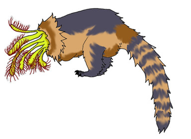 Here is a Fearsome Critter I did some heavy altering to. The main descriptions have them as tall narrow mammals with big arms and claws. Nothing too exciting to me, so I decided to throw it in the nearest taffy puller.