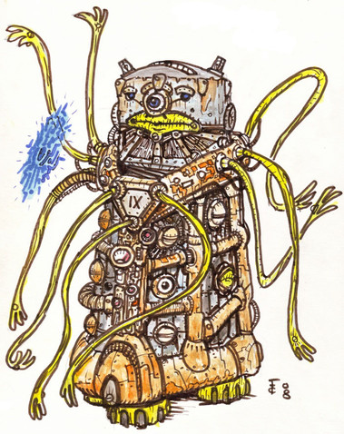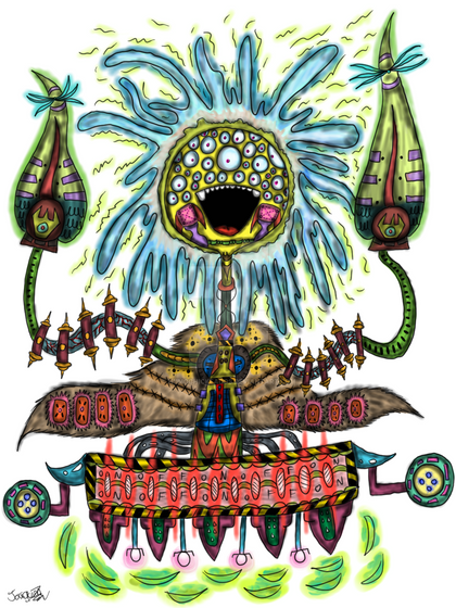 It all started when word spread that Su'Feer'Ir had apparently made camp in a nearby canyon. Uninhabited and rarely traveled, it was said that it had been seen in the area multiple times, indicating it was working on something there. A local warlord sent his best men to drive it off, believing that the Freak posed a threat to himself and his people. Though the battle was long and with a few causalities, they succeeded in ousting it from the canyon, driving it away from their land. But Su'Feer'Ir's presence within the canyon roused the warlord's curiosity, so he sent a crew down to find out why it had been down there. After a few hours of searching, they discovered a recently dug mineshaft. At the end of its many tunnels, the men found shards of an unknown metal, a kind they had not seen before. Bringing the odd find to the surface, a blacksmith was ordered to test the metal, and found that it was much sharper and harder than any other metal he had used before. Upon the realization of what they found, the warlord had the mineshaft put back to work in order to dig up more of the precious metal. For days they dug and mined, finding larger and larger chunks of the strange, resilient metal. But one day, while they dug, a large chunk of tunnel collapsed, revealing a smooth wall of this peculiar metal, with weird etchings in its surface. Upon approaching the wall, one of the panels opened up, revealing a large, mechanical eye. The miners had unknowingly activated the Infinity Rook.The large, tower-like entity lifted itself from its fallen position, destroying the mine and miners within. Dozens of long, black arms emerged from its body, allowing the tower-sized being to climb free of the canyon. Once on the surface, it was soon realized that this odd entity was actual a war machine. Scuttling off to the nearest civilized area, it left a path of destruction in its wake. Its many eyes could fire off laser blasts, blowing holes in castles and towers, and burning villages to the ground. Its many legs would trample anything in its path. When the cavalry arrived, they were quickly mashed into the earth. Arrows and swords are useless against its metal surface, and its legs are impervious to the blade. Siege weapons have proved useful, but they can only knock the Rook down, which doesn't do too much. With its enormous size and lethal projectiles, the Infinity Rook crushed anyone it laid its eyes on. Until the Knights of the Wrong Table came....