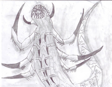 Kan'Tor was one of the seven titans created by the Gods to help build their domain and rule the mortal worlds. Their immense size and power was originally used to destroy the cities and armies of the Gods Of Dawn, a task that lasted many decades to complete. With the Gods of Dawn banished, their remaining creations and species fell to the might of the Titans and faced utter annihilation. Before their task was complete, one surviving species (falsely) warned the Titans of the new Gods, claiming that the Gods would take away their power and worlds when the job was completed. With such poisonous thoughts in their heads, they became convinced that the Gods would cheat them and give them nothing after their many years of service. Realizing the Gods were too strong to take on at the time, they continued their efforts and waited for the right moment. With the help of a traitorous Svlranix, they kept tabs on the Gods and their disputes, taking note in their quarrels and fights. At last, a time came when each God of the pantheon stood apart from each other, torn over a dispute of territory and power. The Titans struck at this time, taking out major cities and destroying sacred temples to further weaken the Gods. Planets fell to their power and the Titans claimed them and ruled over them with a harsh hand. Unfortunately, they failed to realize how such an event would unite the Gods with a common cause. With their followers and worlds in danger over this new threat, the Gods put aside their differences and retaliated with brute force. Though large and strong, the power of the Titans could not match against the united strength of the Gods. Broken and defeated, the Titans were turned to stone and buried deep into the earth, forced to remain in slumber for centuries to come.Kan'Tor's main weapon was his spiked maw and sturdy body. His method of attack was barreling through structures and foes, impaling and grinding enemies with his teeth as he ran. Along with this, his teeth could conduct electricity, and he often used this power to launch destructive bolts of lightening or buildup a charge and stun larger foes when he jabbed them with his teeth. Lacking arms, he used kicks and stomps when in close combat. His tail could be used as a third leg for stability, or to help him up when he falls. It also is an indicator for when he will charge, as it will whip around in a frenzy moments before he plows into things.