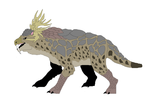 While their sharp spines can be used to help hunt, many folk are surprised to learn that they are mainly for defense. Surely such a wicked looking creature doesn't have many enemies? Well, actually, they do. There are plenty of large predators out there, especially those that would happily take a vulnerable cub. A coat of spikes makes it hard to get a bite, and a spiny tail to the face can discourage a lot of venturous eaters. Interesting thing to note, though, is that the orientation of their spikes and the way they move to defend themselves suggests that their main fear comes from above. Those shoulder spines are perfectly oriented to impale anything dropping from the sky. Since they live in wide open grassy areas, they can be spotted from above, and there are large meat eaters that soar the skies. Pterorcus, dragons and even their own cousins! Indeed, griffins have been know to attack keythongs! What a betrayal! And to think people once thought keythongs were male griffins, and this was just violent courtship! But their spines and numbers work to ward off these attackers and keep their cubs safe. Even then, it isn't uncommon to find one on another beast's menu, especially if they are an individual with no group to call their own.