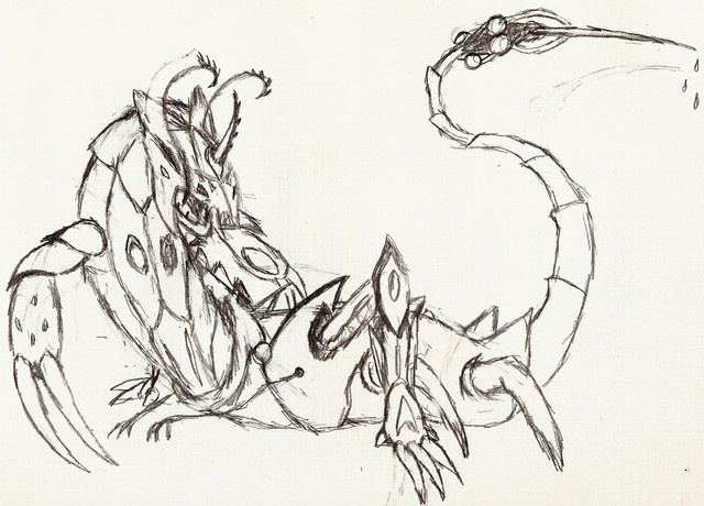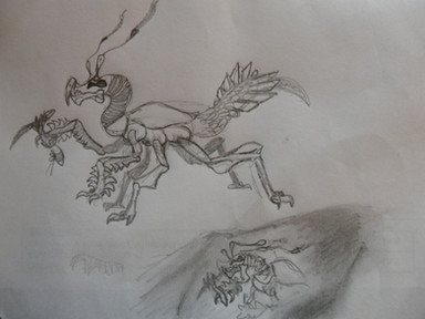 Magalya is one of the elemental Furies that was birthed when the Gods mated with one another. These massive creatures embody the disasters that devastate the mortal realm, and they use their powers to rain destruction on the many worlds. It was their conception that caused Ka'Ran'Koth to ban all Gods from ever breeding with immortals and mortals. Unfortunately the ban did nothing for the monstrosities already birthed, and the Gods could not destroy those that were purely made from their flesh. The Gods could only restrain the Furies, using their powers to delay the disasters that they bring. But every once in a while, one of the daughters will break free and unleash their wrath. Once their energy is spent, they will be ensnared once again, biding their time until they regain their strength.Magalya is the creator of volcanic eruptions, with her proboscis capable of causing entire mountaintops to explode. After her birth and following rampage, she was captured by her father and encased in a stone cocoon. Her shell was placed deep below a dormant volcano, so that the constant melting and hardening of magma would keep her cocoon sealed and repaired from any damage. Sooner or later though, conditions change enough that Magalya can break free from her prison, and she will rise up into the heart of the volcano. Filling herself with magma, she will use her proboscis to inject the molten rock into critical areas of the mountain to build up pressure. Eventually her work and toiling will cause the mountain side to erupt in a cloud of fire and ash. As the sky turns grey and the waves of mud and stone pour down the mountainside, she shall sit upon the ruptured mountain, watching it all in glee. However this massive event draws the attention of the Gods, most importantly her father. He will quickly move to seal her up again, and place her in another mountain, since she pretty much ruined the last one. This new prison will hold her for many years, but eventually something will change and she will break free again.