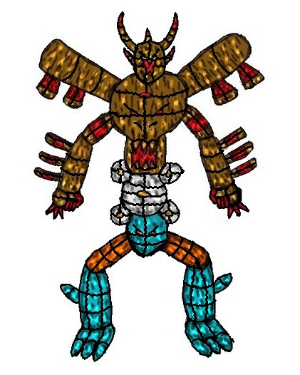 Whenever evil strikes, the Fighty Absorbin Sour Dangers are ready to save the day! No wickedness will go down on their watch! With the five of them working together, nothing can defeat them! However, there may be times when evil comes in to make their problems grow, creating titans of wickedness and injustice! Have no fear, though, as the Sour Dangers have a trick up their sleeve! When faced a colossal foe, they will combine their powers and bodies to take on their ultimate form: The Mega-Blorb! With their hearts fully synchronized into a perfect Slimera, there is no problem too big for them to handle! Their slimy form can stretch and bend in unique ways to dodge attacks and avoid obstacles, while also giving them incredible reach and agility! Their various armor pieces can take a bit of damage, with the rest being absorbed by their rubbery form! The Mega-Blorb isn't just about avoiding trouble though, as they are ready to dish out a serving of justice! A powerful stone shield blocks evil beams, while a built-in cannon can return fire with extra force! When punches and kicks don't do enough, they turn to their trusty blade! A sword formed of steel and slime, it pierces the wicked and whips the unholy! It serves as sword, whip and lance, all in one! With it, they slice, dice and then serve them on a bed of rice! Hope you like hamburgers! With such power and weapons, it is no surprise that the Mega-Blorb is the ultimate symbol of justice and hope! The hearts of the people will be relieved and overjoyed when they see the Mega-Blorb step onto the scene! Or they should, but a lot of them seem to scream and run. How bizarre, wonder why that is? Perhaps it is the evil-doer who fills them full of fear! No worries, dear children, the Mega-Blorb will strike them down!--------------------------------------------------------------