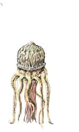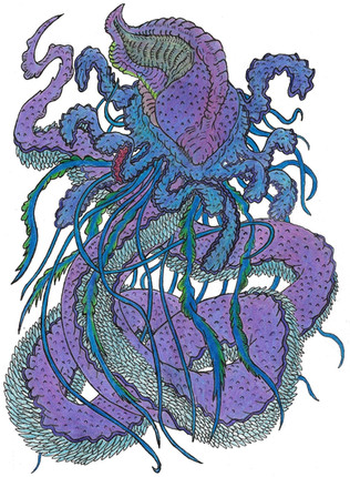 To better understand the Serpent Nest's abilities, one should look at its anatomy. A large portion of is mass is concentrated in its base, this is where the Nest is rooted and it serves as the main body. It has many thick leaves that are arranged in a floral-like pattern, where they can open and close like petals around a central opening. This arrangement allows them to open up during good weather and hunting, as well as slam shut to protect itself from the elements and attack. Beneath these leaves, near the roots, are numerous tendrils that branch out into wet droplets. They writhe and sway like snakes, but they lack the bite of these vipers. These are sensory organs, used to detect prey and predators in a method I shall describe later. On the inside of this huge "flower" it is like a shallow pit that is ringed with small tendrils and hundreds of small pores. Within here grows the main arsenal of the Serpent Nest and its most notorious feature, the "serpents" themselves. These long appendages are not separate creatures or even a head, rather they are long tentacles whose shape evokes the image of said serpent. Unlike the main body of the Nest, these limbs are incredibly flexible and move at astonishing speeds. Not only do they look like snakes, but they strike with the same speed and ferocity! Their stems are tough but elastic, allowing them to stretch an incredible amount! This elastic nature makes it difficult to properly measure the length of these "serpents," as their resting position is almost half of their actual range. Regardless, it is easy to see that these limbs can grow ludicrous lengths, especially in the older specimens! There are tales of one Nest whose arms reached over forty feet! Not sure if it is true, but I could believe it due to their continual growth!
