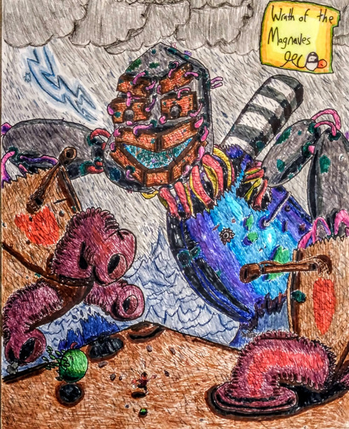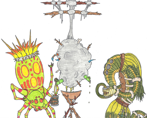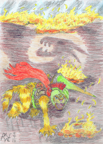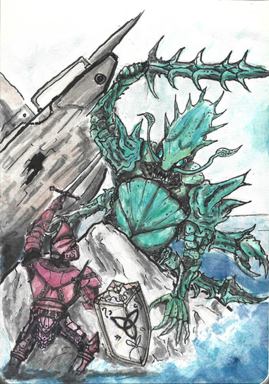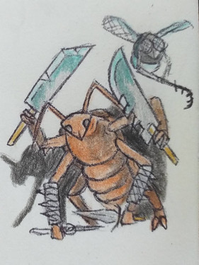 Always have been wanting to draw Alvea wrecking her way through some baddies. Also throw in poor Korgin, who is always the showboat and ever the sore loser. Kind of hard to compete with a knight who is practically programmed to eviscerate threats. Sorry there Korgin, but that's how ants work! Don't think a few dice rolls or equipment changes are going to even the odds.
