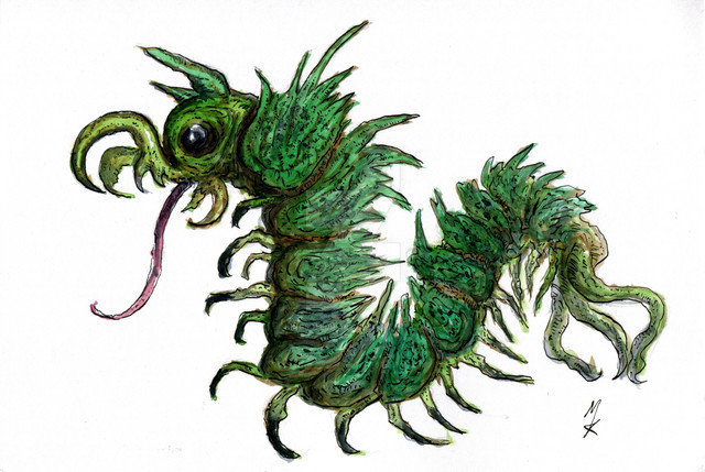 Looking at illustrations of the Shrimp Stalk should give you a pretty big clue on where these critters are found. Bamboo forests and Deep Thickets are the places they call home, as you could say they fit right in there! Though they are far from any beach or ocean, these creatures are crustaceans, which is why they have "Shrimp" in the name! This species has gone fully terrestrial, sticking to the bamboo forests and only interacting with water when they drink rainwater or dew! In these tight green labyrinths, their long thin body is perfect for navigating and slipping through the thickets. This ease of travel isn't shown very well when you actually see them crawl, as their bodies are arranged a bit odd. Their limbs for movement are located near their head and near their abdomen, with nothing in between. The appendages you see scattered along their midsection are meant for sensory purposes, and don't do so well with walking. To move, they crawl along like inchworms, stretching their front out first, grabbing hold, then pulling their rear ends forward to start all over again. It certainly isn't graceful, but it gets the job done. Besides, Shrimp Stalks are not creatures that like to do a lot of moving, as they are better suited for the "sit-and-wait" lifestyle!When they locate a good spot, the Shrimp Stalk will plant its rear limbs into the earth and stretch the rest of the body straight up. They make themselves perfectly vertical and stick their feathered limbs out at different angles. Once set up, they lock everything into place and remain perfectly still, making them blend right in with the surrounding bamboo. With a length of around twelve feet, them standing straight up causes their head and front limbs to vanish into the canopy, while their lower appendages mimic leaves. In this state, it is incredibly difficult to pick a Shrimp Stalk out from the scenery, which is exactly what they want. They are ambush predators that wait for prey to walk by, then they fold their bodies down upon them and strike with barbed mantis-like claws! Sharp limbs will dispatch prey and then they will feed. I imagine the sound of a twelve foot tall, razor clawed crustacean may sound terrifying, but do not fear! Despite their size, Shrimp Stalks prefer to hunt smaller prey. Bamboo rats and monkeys are often targeted, as well as other small mammals and reptiles. The reason you don't see these towering creatures attack an elephant or even a human is because their bodies are not that strong or durable. Being designed to blend in with bamboo means you need a very thin body, which can be easily damaged in a struggle. The Shrimp Stalk wants prey that can be taken out in seconds, as a prolonged fight means a high chance they will be critically injured. The other reason they go after small critters is so that they can actually pick up their meal and lift it high in the air. Grasping it in their front limbs and stretching towards the heavens means that they get to eat without worries of someone sneaking in for the steal. They will gnaw away at the carcass, and when they are done they will use their bendy bodies to whip the husk away from them. Chucking their leftovers may seem odd, but do remember that these are ambush predators. You can't exactly dump corpses at your feet and expect prey to think you are just a harmless piece of bamboo.