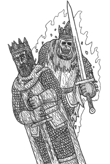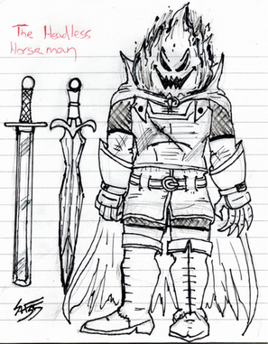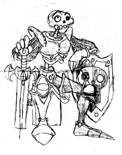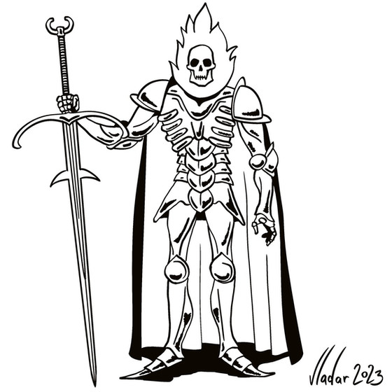 The spirit of a great knight who died in an embarrassing, non-heroic way. He had been at the front lines to face an opposing army in what was supposed to be a great battle. But before the fighting even began, he was shot in the face with an arrow and died. He found this death so stupid and unheroic that he refused to move on. Coming back from the dead as a ghost, he found himself facing a harsh truth. Though he was worshiped and loved in life, in death, everyone just moved on and forgot. He ran into the Knights of the Wrong Table when he heard about an order that let anyone be a knight. So insulted by the concept of "anyone" being a knight, he went before them to insult and scold them for such a blasphemous idea. His anger left no impact on the order, especially when Vikus found out his true identity and was in awe of meeting a great knight. Despite his rage and insults, he begrudgingly joined the order, as no one else would take him in.