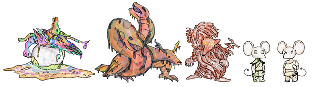 Finally getting around to explaining some more dominant, sapient species of this world. Slimes are some oddballs, but they have led to some fun designs!