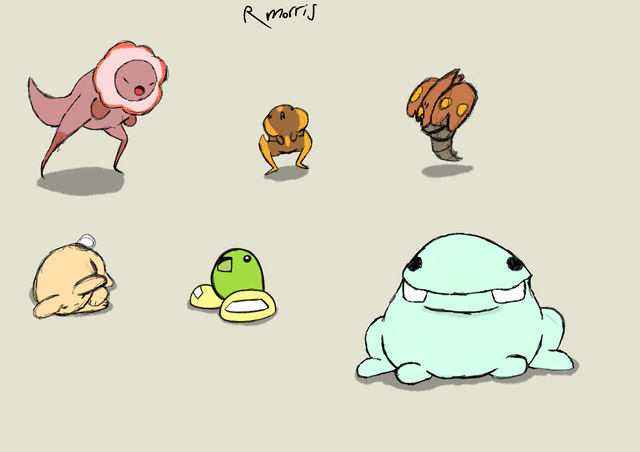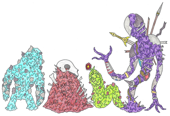 This entry might seem a little odd to some, as I don't really ever do fan art. I was bored one time, though, and decided to draw up some of the monsters from the game Starbound. I can't tell you how many hours I have spent playing that game, as there is something so gosh darn relaxing about it. Yeah, it is bit of a more cartoonier style than the stuff I do, but I just figured I would have some fun drawing these critters.