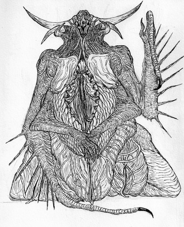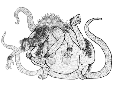 I recall at some point someone mentioned that a lot of the dimensional horrors out there mainly use arthropod and cephalopod characteristics, and you don't get too many that lean hard towards other animal groups. One of the mentions was mammals, and that made me wonder what monstrosity one could make purely out of mammalian parts. So I decided to have fun and slap a bunch of mammalian bits together. The weirder, the better!