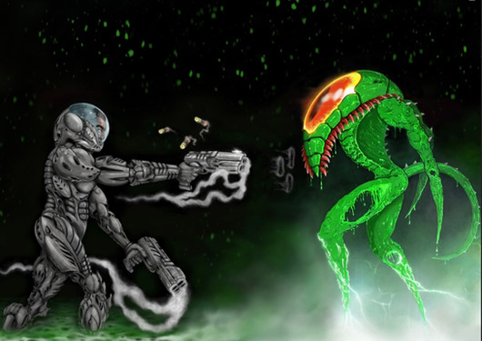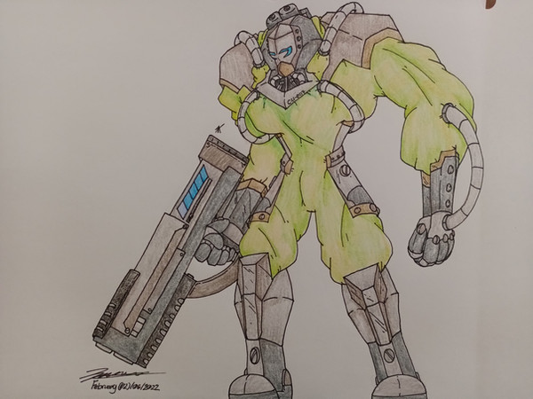 The alien race known as the R-D-Es (Radiation Dependent Entities) is a species that can only survive in environments that have high amounts of radiation. Without proper amounts of radiation, their bodies deteriorate and crumble to dust. The radiation also seems to be their food source, as they do not require food or drink. Their true bodies are thin and lanky, with their limbs having multiple joints. Many have referred to their body type to be like "four-legged spiders." But the appearance that many know them as is when they are in their bulky radiation suits. These suits are much larger and restrictive then their true bodies, forcing their jointed limbs into a humanoid form. The suits are heavily armored and built much like a tank. Large packs strapped to their suits constantly fill the suit with lethal amounts of radiation, keeping the R-D-E inside alive. These suits are deployed when the R-D-Es have to be environments without the proper amount of radiation. Thus, the suits are reinforced and armored to keep the radiation inside, and prevent it from leaking out. They operate these suits with a mix of physical controls and mental link ups, allowing them to steer the heavy armor. Despite all these controls, the suits are very slow and awkward, almost waddling from place to place. Though many find this silly looking, the containment suits they steer are far from harmless. A port on the front of their suit is capable of opening, bleeding off massive amounts of radiation. Specialized hands that can be swapped onto the suit arms have nozzles that release thin blasts of concentrated radiation. With these two simple tools, they can clear rooms of enemies with a radioactive burst, frying flesh right off the bone. And due to their containment design, the suits are impervious to many handheld weapons, with bullets and lasers barely scratching the armor. Only explosives and heavy weaponry can breach their suits, which would make it seem easy since they move so slow. But breaching an R-D-E suit is not advised, as all the radiation inside will burst out. The reactors in their packs can detonate when heavily damaged, and can wipe out a city with ease. R-D-Es are aware that their destruction would cause the deaths of thousands, and often use it to their advantage, walking right through enemy forces, knowing that they dare not fire.R-D-Es travel through space on insect-like vessels that are powered by nuclear reactors. The insides of these ships are heavily irradiated, so that the R-D-Es can move about them without their suits. With this, their interior design is based around their lanky, climbing figures, having narrow corridors, tall shafts and little to no even ground. They clamber through their ships like insects, latching onto walls and ceilings, and often don't differentiate between them. This gives them an advantage in space combat, as they do not require gravity generators and they can easily traverse their ships when it maneuvers through all the planes of space. Their weaponry is mainly atomic missiles that are slow but extremely powerful. The ship themselves is often used to attack, ramming into other ships and piercing the hulls with proboscis-like drills. Once pierced, the R-D-Es will pump in radiation and kill all within. Those who take on R-D-Es in space combat must keep their distance, as even when they defeat them, their ships can create a massive explosion that can take the victors with them.