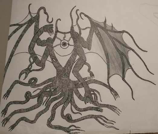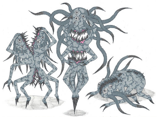 Vortess is one of the elemental Furies that was birthed when the Gods mated with one another. These massive creatures embody the disasters that devastate the mortal realm, and they use their powers to rain destruction on the many worlds. It was their conception that caused Ka'Ran'Koth to ban all Gods from ever breeding with immortals and mortals. Unfortunately the ban did nothing for the monstrosities already birthed, and the Gods could not destroy those that were purely made from their flesh. The Gods could only restrain the Furies, using their powers to delay the disasters that they bring. But every once in a while, one of the daughters will break free and unleash their wrath. Once their energy is spent, they will be ensnared once again, biding their time until they regain their strength.Vortess is the creator of tornadoes, the spinning of her twisted body capable of creating powerful twisters. For most of the time, she is imprisoned by father, trapped within a solid cloud drifting through the skies. Eventually her strength grows to the point where she can break free from this prison and descend to the mortal plane. There she will spin her body to create twisters around her. Most of the time, she whips these twisters away from her, letting them tear across the countryside. But sometimes, she becomes enraged, her time within her prison filling her with anger. When those dark times come, she will remain in the eye of the twister, spinning faster and faster as the two leave a path of destruction. This single tornado is massive in size and power, capable of wiping towns of the map. The roar that comes from her open mouth will drown out all sound, and signal the doom of many homes and lives. After her rage has died down, she will tire and lose her strength. Her father will descend from the sky and take her back up, creating a new prison to lock her in.