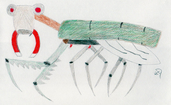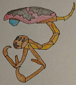 The Fishing Weevil feeds primarily on small fish that it catches with its highly modified proboscis. It dangles it into the water and tries to catch the attention of prey with its flailing antenna and bright colors. When fish move in for a bite, it spears it and drags it to the surface. Its barbed claws will sink into the fish's flesh, preventing escape. The Fishing Weevil will then retreat to a safe spot, where it can drain the fluids of its prey.----------------------------------------------------