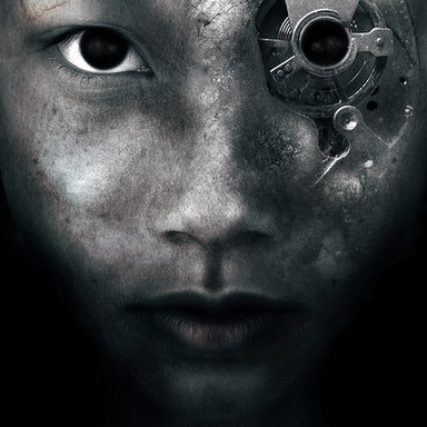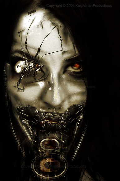 Nicely done... I like the crumbling cheek and skin around the machine.