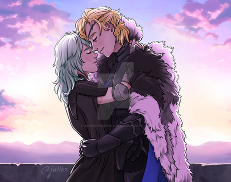 This is pretty much my valentine's day project for this year, since I already finished it I decided to post it early because the FE3H DLC story comes out on Valentine's day and I'll be most likely playing that on the day while also spending quality time with my bf. I still ove the ship with all of my heart and I just had to draw them again... And yeah I've drawn them alot and most likely still will in the future, although a big portion of my already done work is not available here for uh... content reasons. You can find it on my Pixiv or on twitter though, I go by the same name there if you want to give it a look. I'm not super experienced when it comes to human kissing scenes so this was also a great practise for that which I'm thankful for.The picture itself it pretty much obviously a follow up to the ingame S-support scene, BG is heavily inspired by it too but I think that's obvious