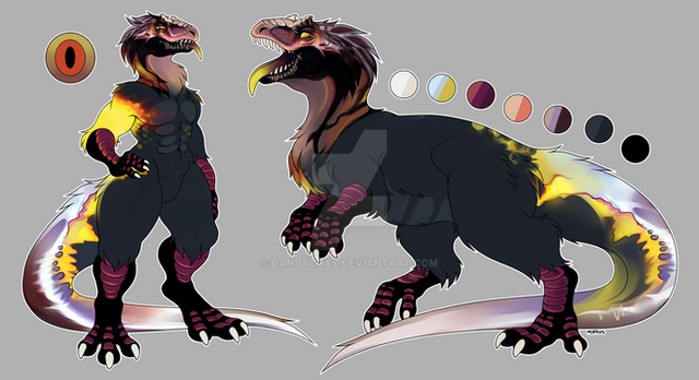#characterdesign #digitalart #originalcharacter #referencesheet #dinosaur #carnivore #daspletosaurus #tyrannosaurid #fire