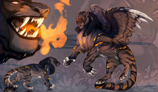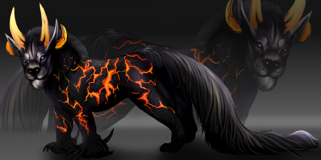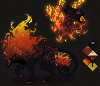 For Shamirr on Flight Rising! A Fire Elemental Lion creature.Info: evrah.carrd.co/