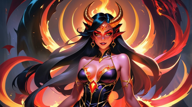 #ai #artwork #artworks #beautifuleyes #blackhair #digital #digitalart #dndcharacter #fantasy #flames #girl #horns #illustration #longhair #redeyes #redhead #aiart #art #dndartwork #stablediffusion #beautiful #dragongirl #multicoloredhair #pyromancy #redhair