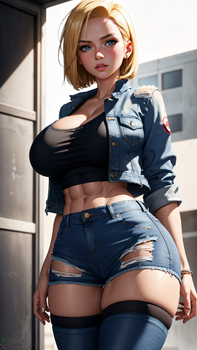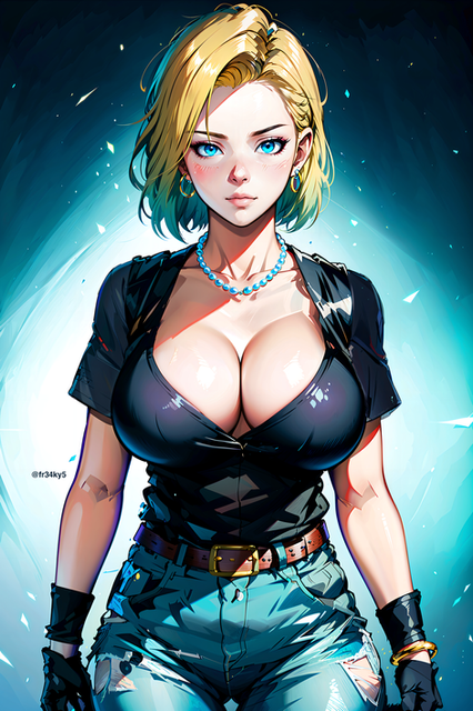 #android18 #blondebombshell #dragonballz #largebreasts #fitnessgirl #waifus #aiart #aiartwork #aiartcommunity #bustynfit