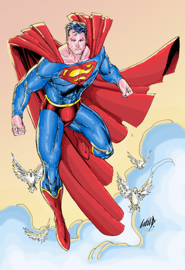 My drawing of Superman in color.