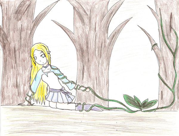 I drew this on oekaki....Alot of people liked it, and I felt special! ^_^ The tree is absorbing her, she is a plant element, and her power is needed for the forest to survive, but she will never be able to....what am I saying, there's no story behond this *thwaps self*Related content