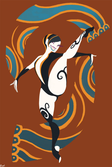 this is a very lovely piece! the bold lines and bright colors are well done, and i agree that his tail being orange helps w/the piece. it even suggests 2 creatures being present when you first look at the piece. very nice!
