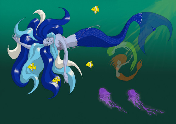 wow, nice perspective x3 and the water~ looks so real xD the mermaid's tail and hair rocks x3 and those scales~ you're crazy xD in a good way of course xDDD