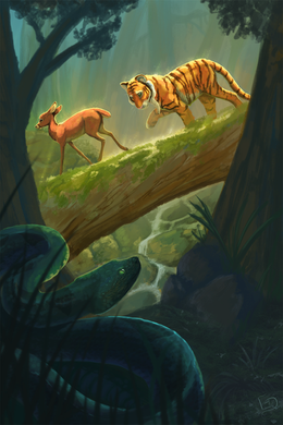 Finally something new from me! I did it today, I just wanted to practice drawing backgrounds. I've added the boy and its tiger just and only to fulfill the picture, so they're both not really detailed.