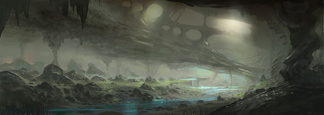 Amazing! I'm trying to draw a cave as well and I just want to ask: Did you use and rocky textures you found on the internet for this picture or did you draw it yourself?Β