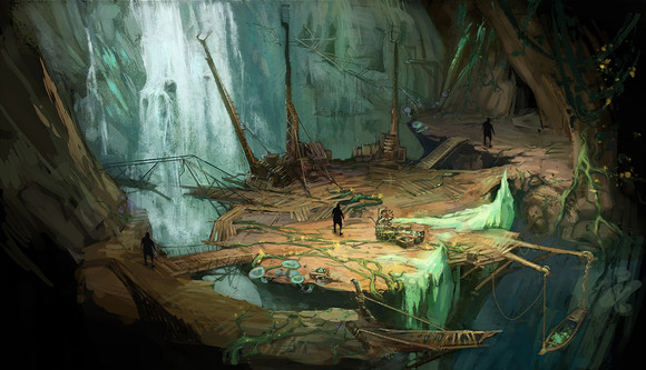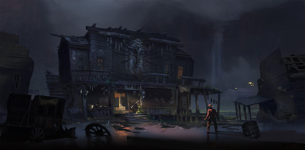 The general layout and palette looks like a fairly RPG dungeon pic, but the steam engine and all really take us sideways here. Nice!