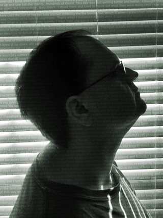Oh, I don't wear glasses - only for photo ops. The ones I wore here and in "Visionary" are just two old pairs of glasses that were my mom's that she doesn't use anymore. And rather than just throw them away, I decided to use them for some pictures... I keep a lot of old things that should be thrown out just in case I might be able to use it someday for some kind of artwork...