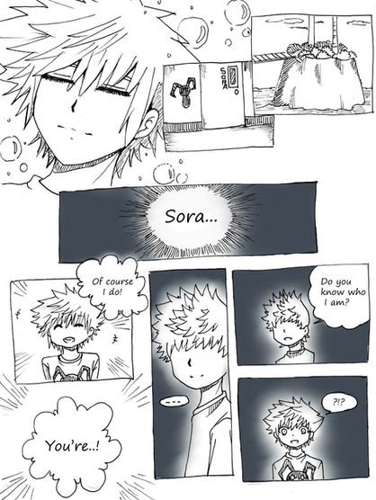 Edit: When I first posted this it was originally 'Kairi!' instead of 'Riku!'(In the first speechbubble that Roxas is shouting...I hope I'm not too confusing)-sorry for the change but...I'm weird.