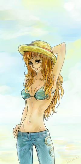 a very original yet familiar outfit..........reminds me of her outfit in arabasta.......but it is obviously not...........nice work