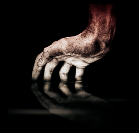 This shot has such a great texture to it. The depth perception is unusual as is the imaginative aspect of it. I love the detail of his hand. Nicely done!