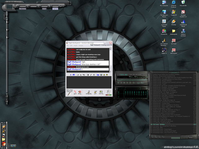 My dark theme on my win2k pc, using one of my favorite wallpapers from a real cool guy, loco (ioco). I'm messing with some settings on my gfx card using NVmax, and using...Winamp: DirtChamber by Monaux