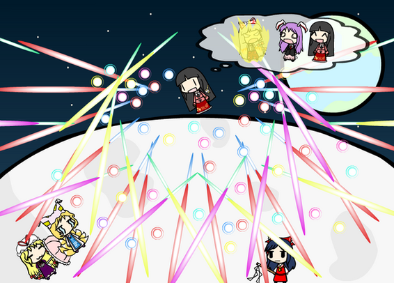 Headcanon: spell card rules existed in pc-98 era, ZUN simply haven't given them proper names and rules yet. If spell card rules doesn't exist in pc-98 era, then some form of pre-spell card rules existed. They might not be called spell cards, but their function is essentially identical. This is because ZUN himself stated that if the characters really want to kill each other, they wouldn't even need half of the bullets on the screen *citation needed*. Plus, when characters fight each other, they use bullet patterns, the background changes, attack pattern changes based on damage dealt, nobody dies, and the loser gets some clothing damage and tears, all characteristics of modern spell card duels.First time I *properly* used Shinki in walfas. About time, she is one of my most favorite characters. Well, when it comes to pc-98 era, not a lot of super cool characters to choose from. Anyways, speaking of misconceptions, might as well address a big one. Shinki never destroyed Makai. When the protagonist defeated Shinki, she promised them to do whatever she can to sastify the protagonist's demand (stopping the tourist agency from sending so many demons to the eastern country* in case of Reimu, whatever the fuck the others wanted I'm not sure). Nowhere in the game it is mentioned that she destroyed Makai. I cannot find any sources to back up the popular claim that Shinki destroyed Makai or Makai was devastated or whatever. If you can find canon sources (not fanon), please inform me because I would really appreciate it.