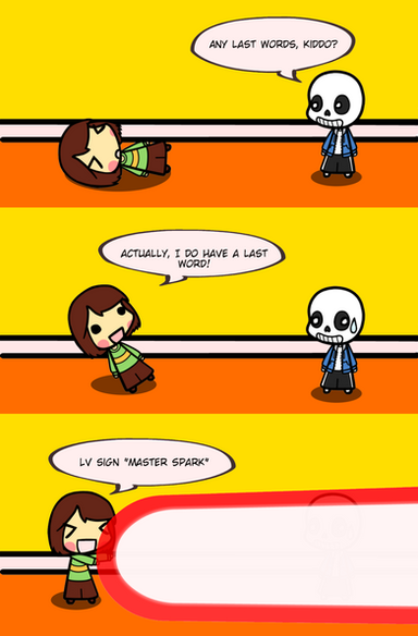 By the way, in LoLK Erin gave the protagonist Ultramarine Orb Elixir, which basically gave you save and reset on crack. Imagine a pointdevice 2hu fighting save/reset Frisk/Chara. We won't get anywhere anytime soon.