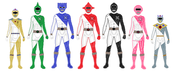 Inspired by 's Kaiserverse Canon Changes, took me a bit of trial and error with this team, especially with those helmets, but hopefully I did my best with it. Also, as you may have noticed, I took a page out of Lightspeed's Sentai counterpart and included the one shot Demon Hunter, or Huntress as one can see here, and made her an extra member of the team.Canon Changes