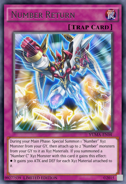 During your Main Phase: Special Summon 1 "Number" Xyz Monster from your Graveyard, then attach "Number" monsters from your Graveyard to it as Xyz Materials, equal to the number of Xyz Materials required to Xyz Summon the Special Summoned monster.