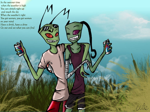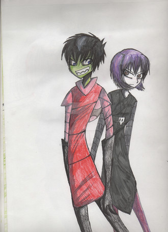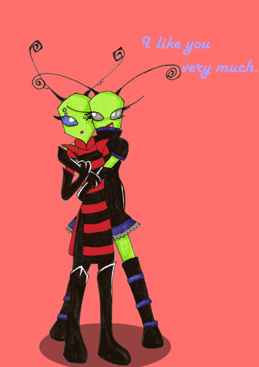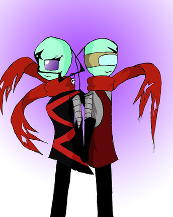 here you go Roxy! ^^ hope you like it! (dang.... WHY ARE HER ANTENNA SO FREAKING HARD TO DRAW?! *flips table* eh... anyhow... this is for because she drew me this EPIC picture! (go check it out you wonderful fools) [link]so yeah! she asked me to draw her irksona hugging 's irksona! SO I DID! :'D im not quite sure what their personalities are like so i just decided to wing it! XD hope it doesn't fail too much! drawing hair on irkens was a completely new this for me and it was interesting to try out!