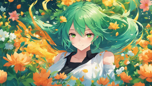 #digitalart #anime #animegirl #digitalpainting #characterdesign #photography #wallpaper #beauty #cute #flowers #grassland #greenhairedgirl