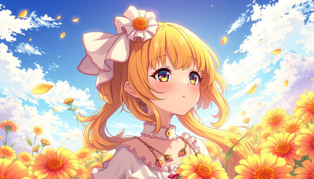 #anime #digitalart #animegirl #dress #characterdesign #animestyle #blonde #cute #cuteadorable #daytime #flower #flowergirl #kawaiiadorable #yellow_hair