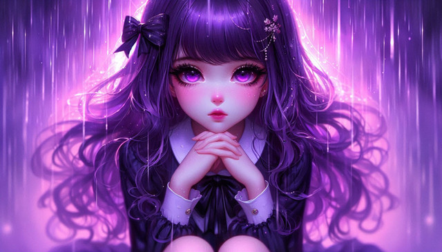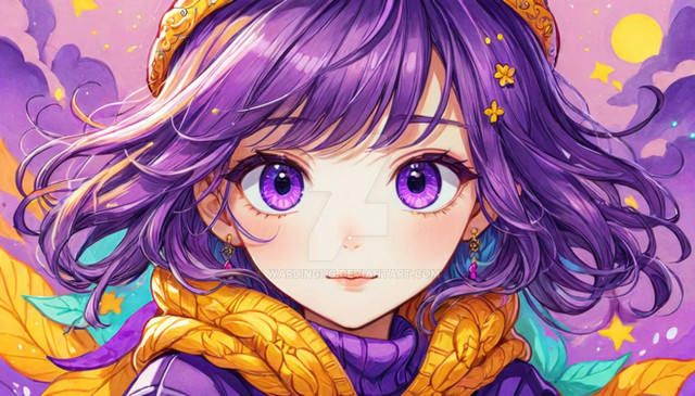 #anime #portrait #animegirl #digitalpainting #digitalart #magic #adoptable #fantasyart #fantasycharacter #longhair #purplehair #purplehairgirl #schoolgirluniform #yelloweyes