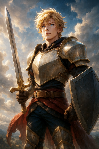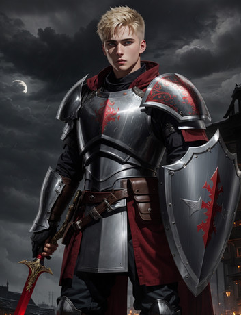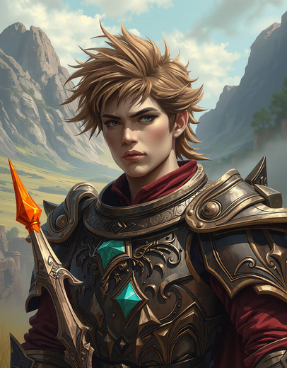 #fanart #characterdesign #warrior #portrait #fantasyart #fantasycharacter #redhair #adventurer #armor #boy #fantasyillustration #handsome #male #man #semirealistic #shield #sword #young #youngboy #armorfantasy #holding_weapon