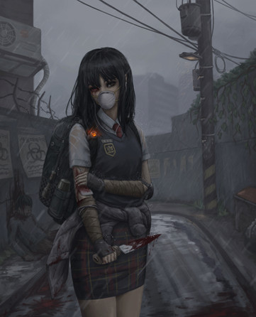 #digitalart #digitalpainting #characterillustration #originalcharacter #characterdesign #warrior #scifi #anime #emotional #guns #rain #redhairedgirl #redhead #schoolgirluniform #tattooedgirl #tattoos